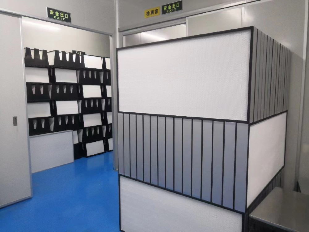 4、高效過濾器安裝前,必須在安裝現(xiàn)場拆開包裝進(jìn)行外觀檢查,內(nèi)容包括濾紙、密封膠和框架有無損壞;邊長、對角線和厚度尺寸是否符合要求;框架有無毛刺和銹斑(金屬框);有無產(chǎn)品合格證,技術(shù)性能是否符合設(shè)計(jì)要求。然后進(jìn)行檢漏。經(jīng)檢查和檢漏合格的應(yīng)立即安裝。安裝時(shí)應(yīng)根據(jù)各臺(tái)過濾器的阻力大小進(jìn)行合理調(diào)配,對于單向流,同一風(fēng)口或送風(fēng)面上的各過濾器之間,每臺(tái)額定阻力和各臺(tái)平均阻力相差應(yīng)小于5%,潔凈度級別等于和高于100級潔凈室的高效過濾器,安裝前應(yīng)按附錄六、一規(guī)定的方法檢漏,并符合第5.4.1條規(guī)定的要求。